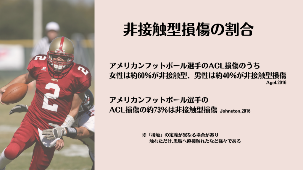 ACL損傷時に接触プレーがあったのか、なかったのかになります。