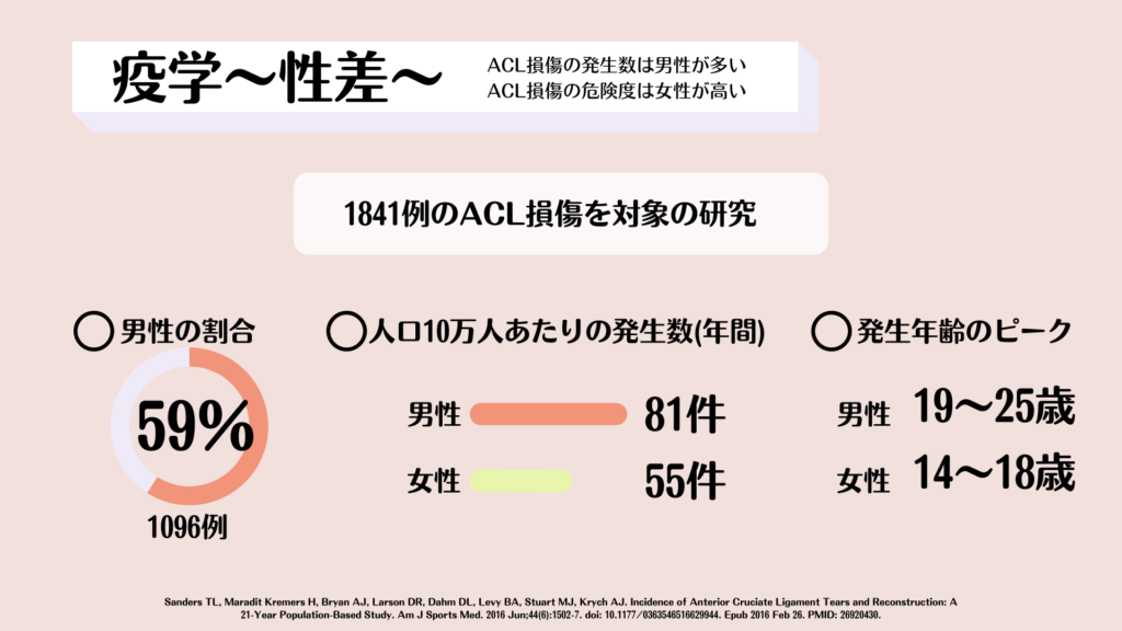 ACL損傷の発生数は男性が多い、ACL損傷の危険性は女性が高い
