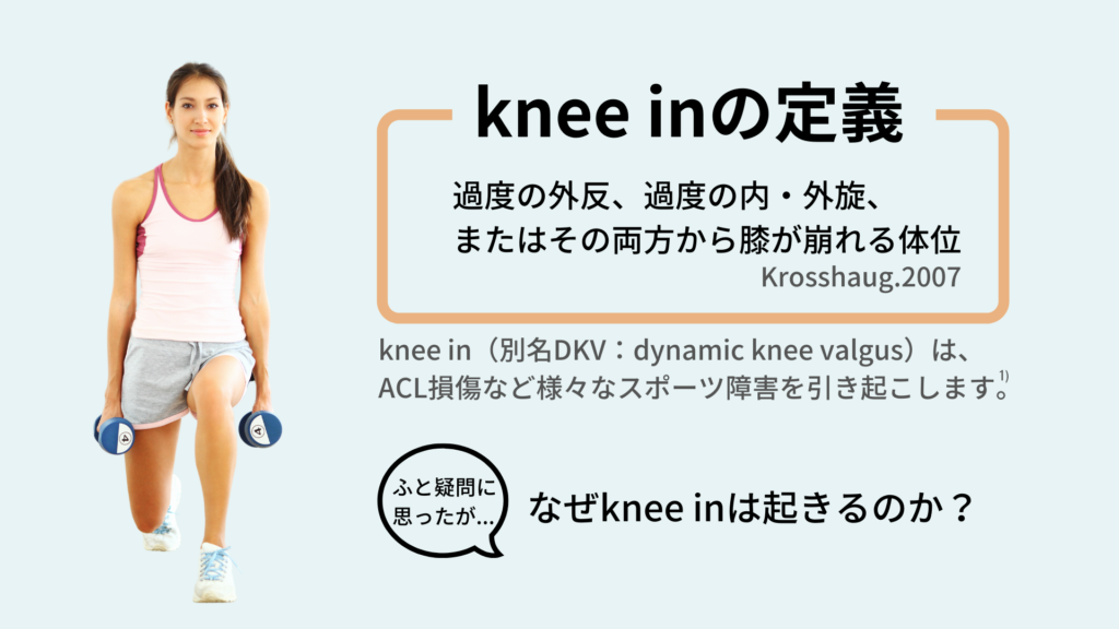 knee inは別名DKV(dynamic knee valgus)とも言い、ACL損傷や半月板損傷などにつながってしまいます。