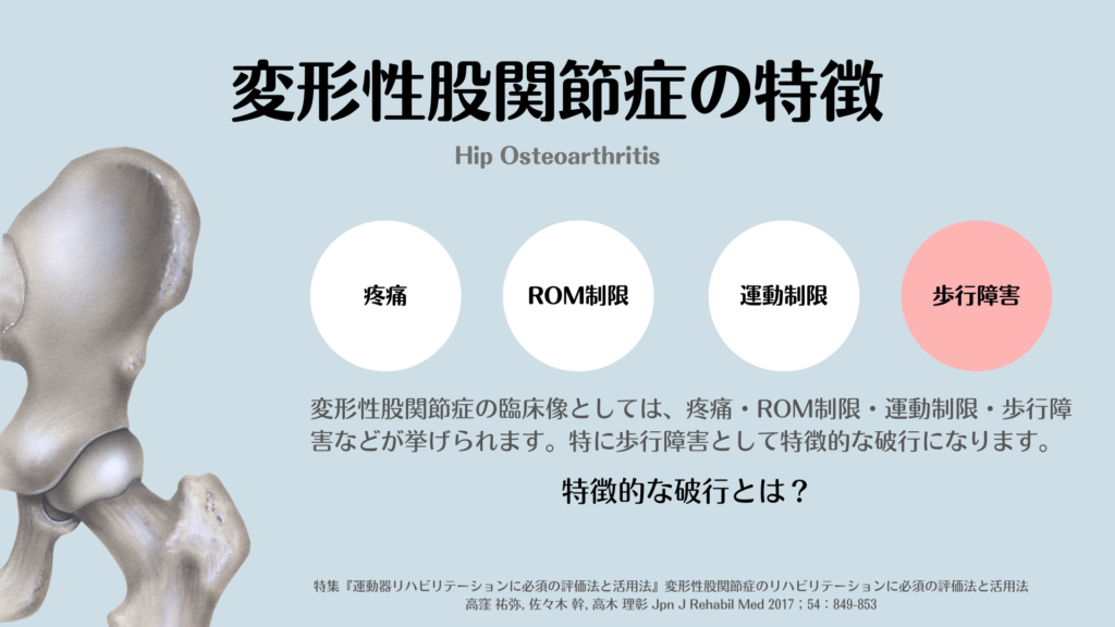 変形性股関節症の特徴としては、いろいろ臨床で経験していると思います。